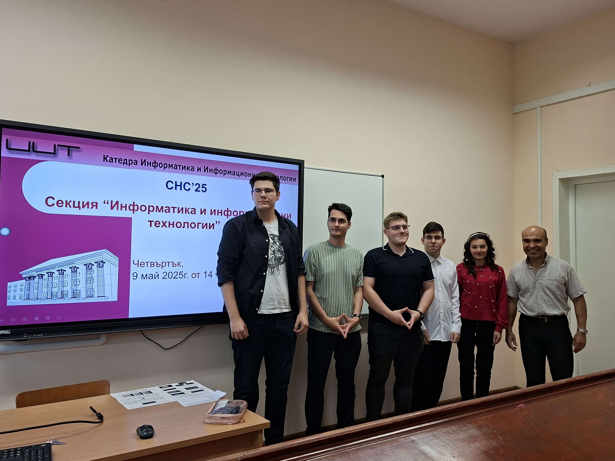 На 8.05.2025 г. се проведоха традиционната Студентско-докторантска научна сесия и Вечер на специалностите на катедра ИИТ. В секция „Информатика" на СНС е с научен секретар проф. д-р Цветомир Василев, бяха изнесени 4 научни доклада: